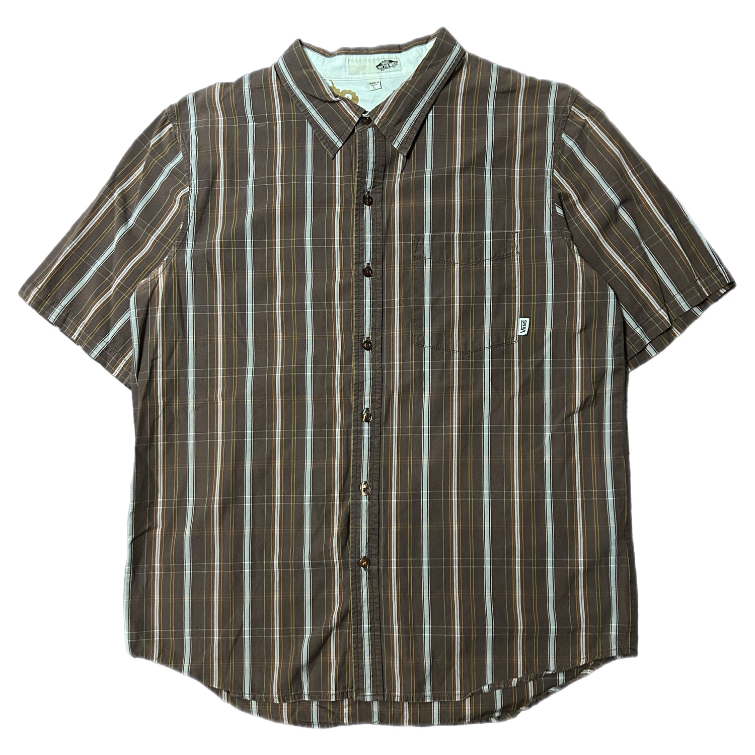 (L) Y2K Vans Vertical Stripe Button-Up Brown Shirt
