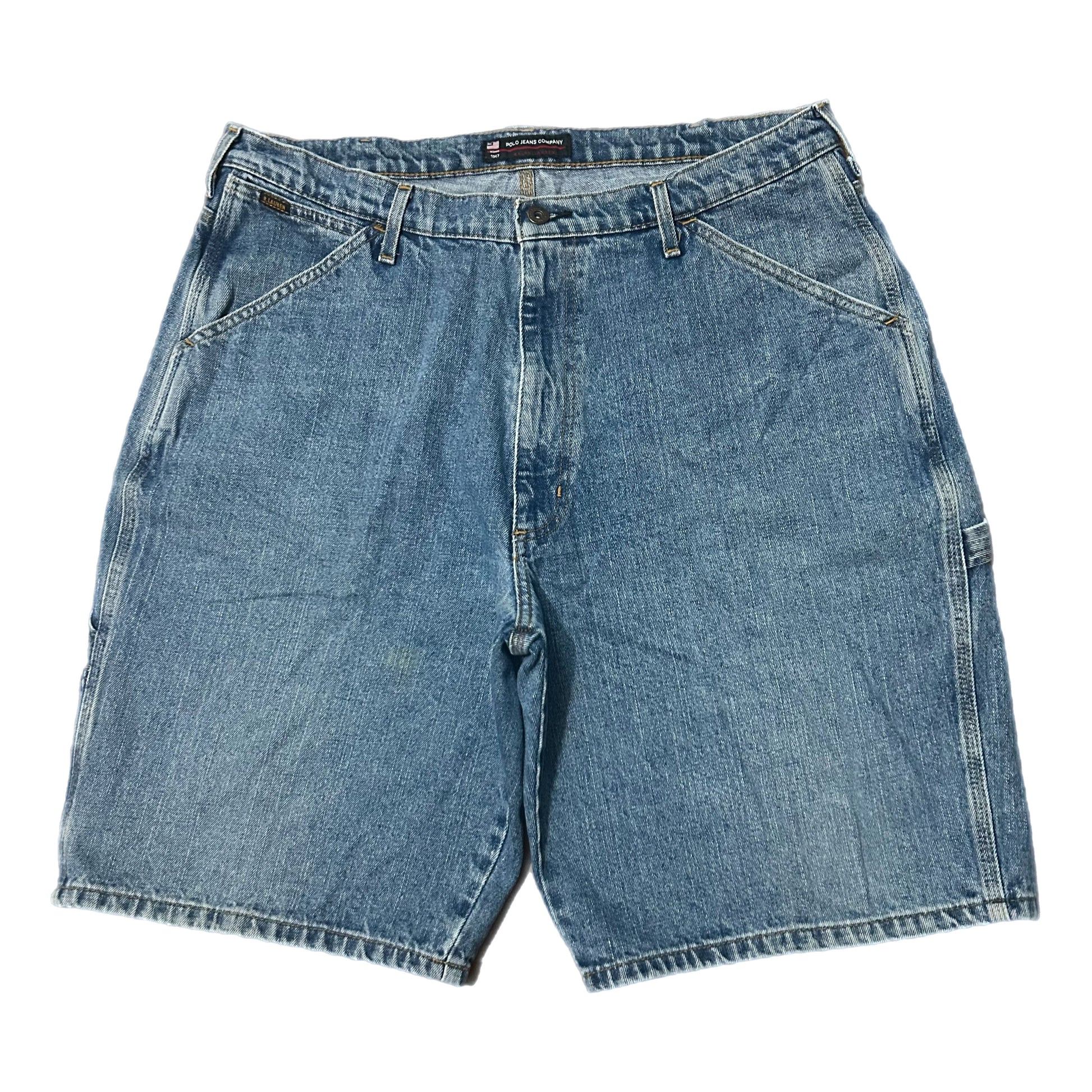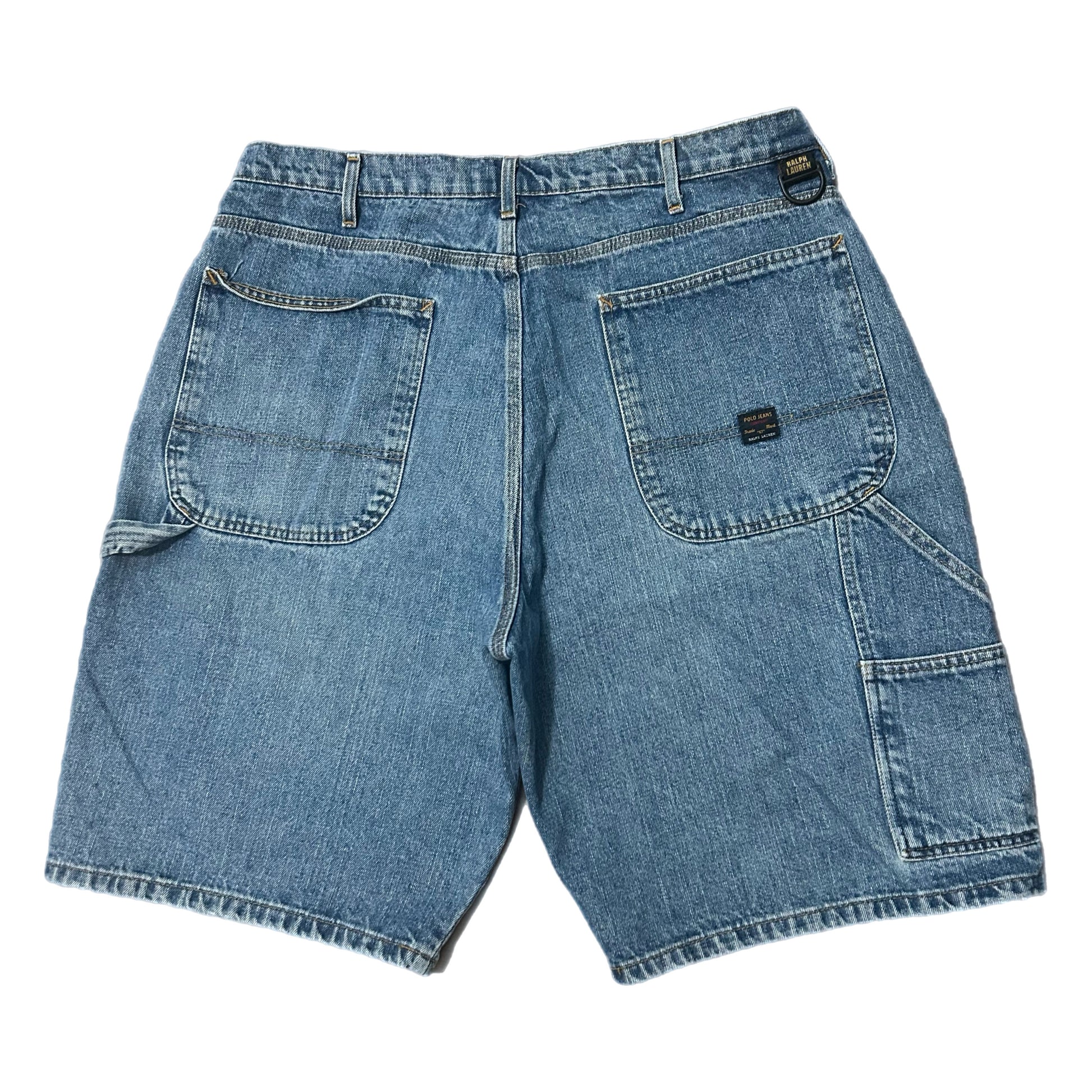 (36) Vintage Polo Ralph Lauren Dark Wash Carpenter Denim Shorts