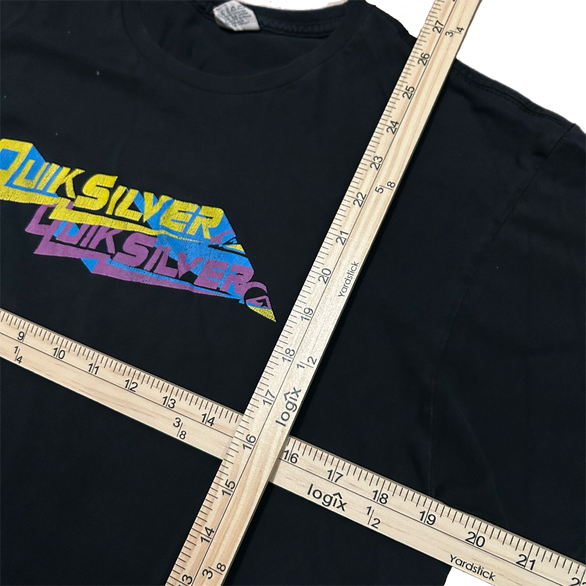 (L) 2000s Quicksilver Multi-Colored Logo Black T-Shirt